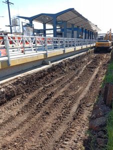 • Componentes técnicos: Los trabajos incluyen la adecuación de señales luminosas, conexión de cableado con barreras de pasos a nivel, adaptación de circuitos de vía y la reubicación del sistema de frenado automático ATS (Automatic Train Stop).