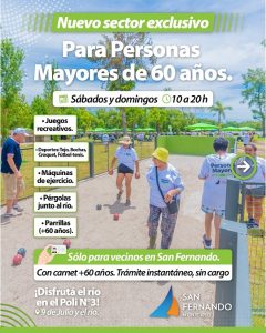 Y PARA LOS MAYORES DE 60 AÑOS: pueden usar sin cargo el nuevo sector exclusivo con deportes, parrillas y pileta.