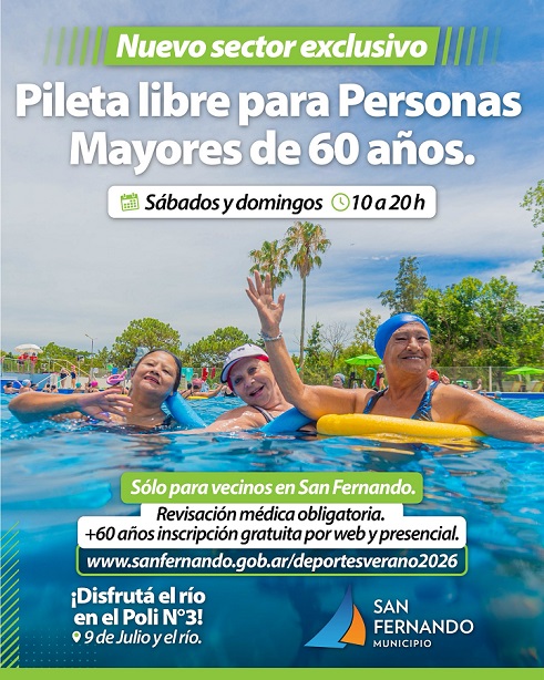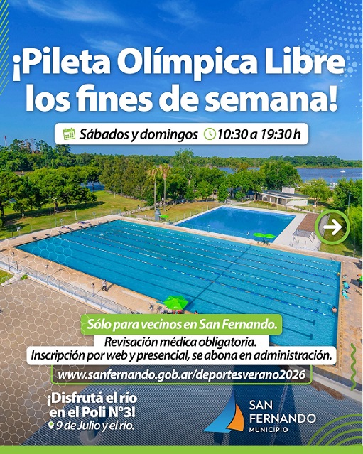 Con revisación médica obligatoria y abonando en administración, pueden disfrutar una de las únicas Piletas Olímpicas de la región. Inscripción web en sanfernando.gob.ar/deportesverano2026