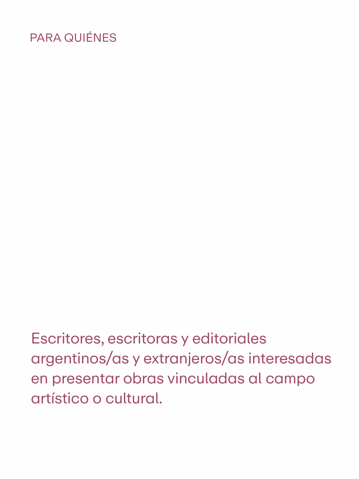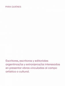 👉 Dirigida a escritores, escritoras y editoriales argentinos/as y extranjeros/as con obras vinculadas al campo artístico o cultural.